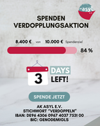 Nur noch drei Tage! Wir haben unser Ziel fast erreicht! Mit euch schaffen wir noch den Rest! Im Monat April haben wir eine besondere Aktion: Spenden mit dem Stichwort „Verdoppeln“ werden im April von dem Bielefelder Stiftungsfonds „gemeinsam-solidarisch“ bis zu einer Gesamtsumme von 10.000 Euro verdoppelt.